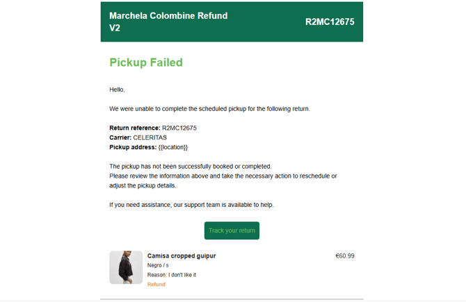 New email template when ShippyPro pickup has failed.