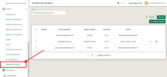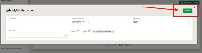 NOTA: Cuando se elimina un usuario de una tienda, automáticamente se elimina de las otras tiendas a las que estaba asignado.