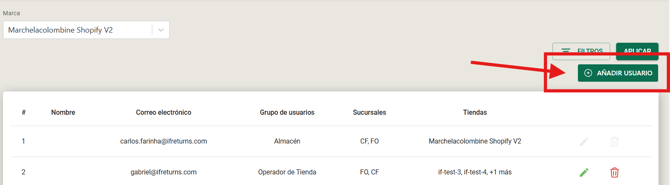 - Se añadirá automáticamente un usuario a la marca de la tienda en la que se encuentre