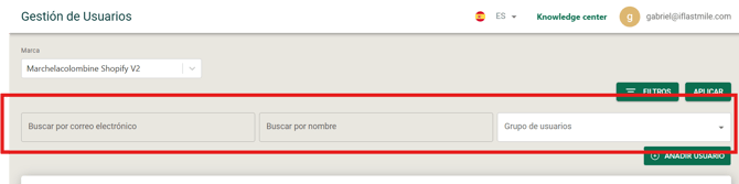 - Puedes filtrar a los usuarios por correo electrónico, nombre o grupo de usuarios