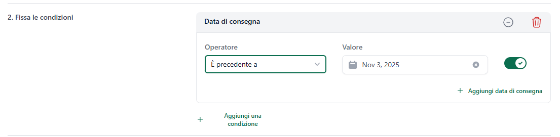 Vai a - > Regole - > aggiungi nuova regola e fai clic su + Aggiungi una condizione