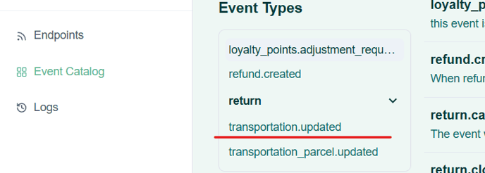 in SVIX abbiamo aggiunto un nuovo evento webhook chiamato transportation.updated