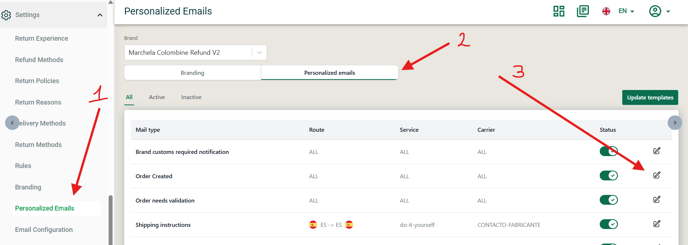 4. Dopo aver aggiunto un tag vai a e mail personalizzate sulla piattaforma iF
