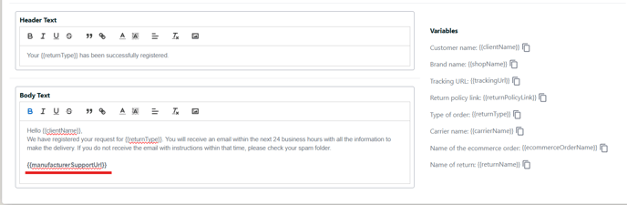 Quando un cliente crea un ordine di reso e verrà inviata un'e mail con variabile