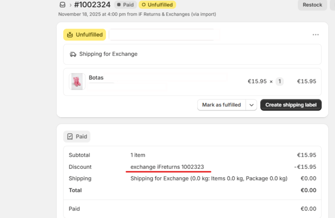exchange iFreturns “{order_name}”