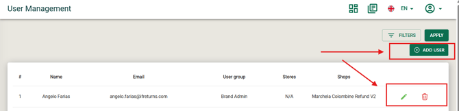 - Come amministratore del marchio vai alla pagina - > Gestione utenti per vedere le azioni disponibili
